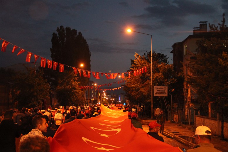 Belediye Başkanı Faruk Köksoy ise, “15 Temmuz’un sene-i devriyesini birlikte kutluyoruz. Bu farkındalığı niçin yaşıyoruz? Sayın Cumhurbaşkanımız çok güzel ifade etti. Dedi ki DEAŞ’ın, PKK’nın, FETÖ’nün görünen yüzü var, görünmeyen yüzü var, arkasındaki derin yapılar var. Bunları unutmamak için birlikteyiz. 15 Temmuz 2016 gecesi Sayın Cumhurbaşkanımızın halka meydanlara caddelere inmesi çağrısıyla birlikte Ardahan halkı da, siz değerli hemşehrilerim de, hep birlikte aynı tepkiyi koyduk. Bu nedenle hepinize ayrı ayrı teşekkür ediyorum. Bugün bu farkındalık ve bu hain darbe teşebbüsünün unutulmaması için birlikteyiz. Kardeşliğimizin, birliğimizin, beraberliğimizin, bayrağımızın inmemesi için birlikteyiz. Devletimizin bekası, milletimizin dirliği için birlikteyiz.