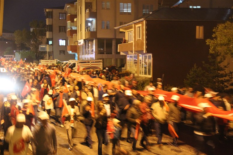 Bir yıl önce yaşanan ve hepimizin içinde birer parçası olduğu çok hain bir girişimle karşı karşıya kaldık. Peygamber ocağı bildiğimiz, devletimizin göz bebeği ordumuzun içine sızdırılmış, yıllarca yerleştirilmiş, haşhaşi dediğimiz kişiler maalesef ordumuzdan gasp ettikleri tanklarla, uçaklarla, silahlarla bu millete saldırdılar. Birliğimizin sembolü olan TBMM’ye ve Cumhurbaşkanlığı’na saldırdılar. Ama Kurtuluş Savaşında olduğu gibi Büyük Önder Gazi Mustafa Kemal Atatürk’ün öncülüğünde toplanan Türk milleti en zor şartlarda o mücadeleyi nasıl verdiyse, insanlarımız doğulusu batılısı, güneylisi, kuzeylisi, sağcısı, solcusu, demeden kimi camiden, kimi meyhaneden Sayın Cumhurbaşkanımızın da çağrısı üzerine meydanlara koştu.